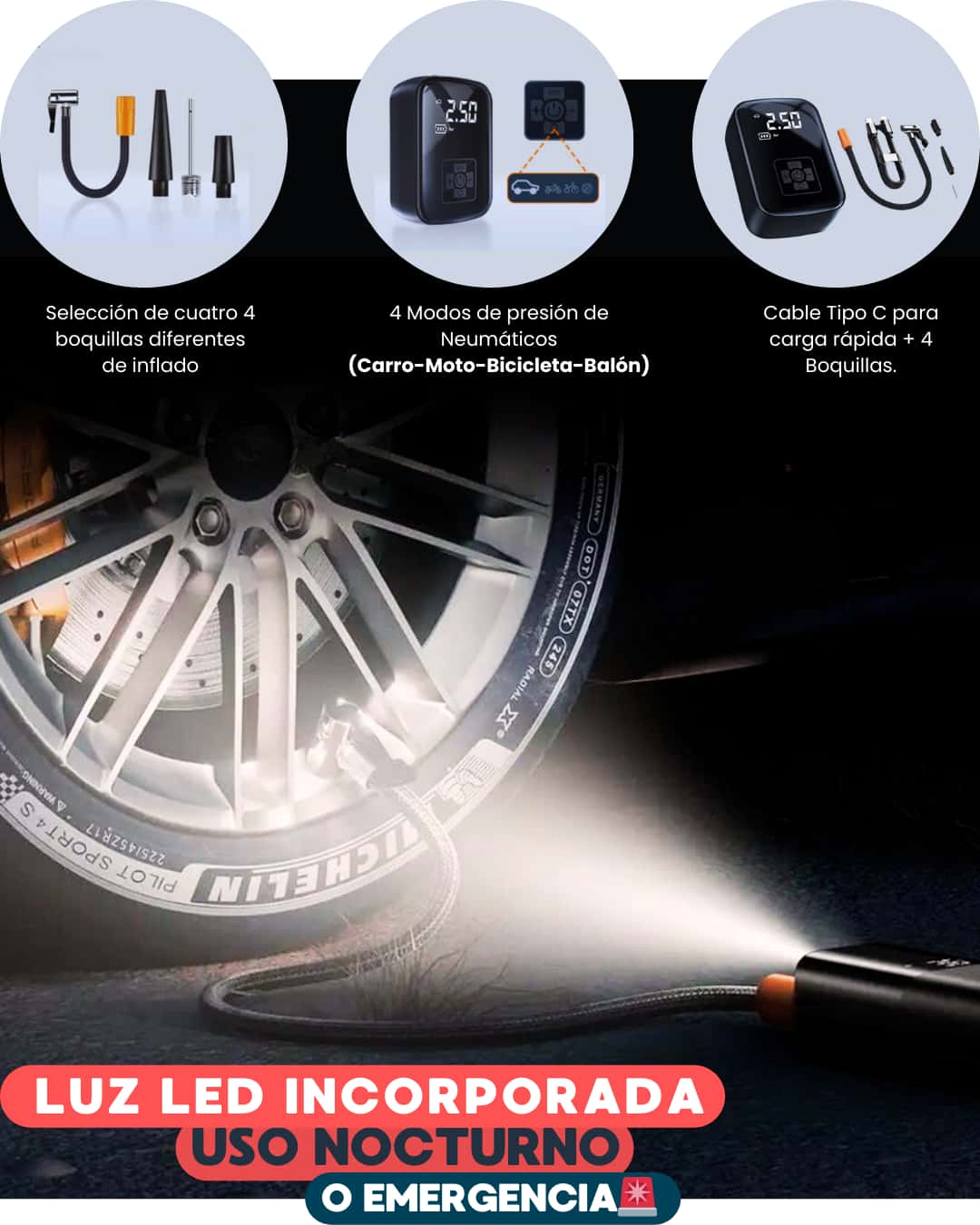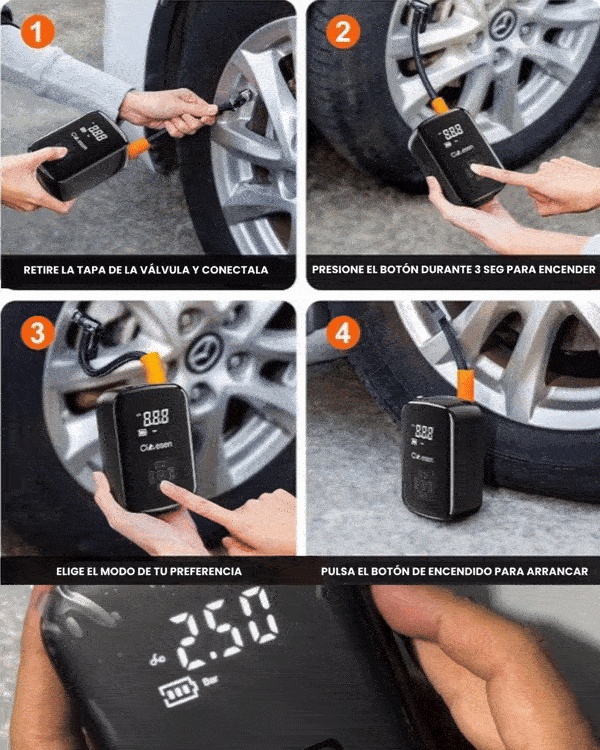💡En 4 PASOS logras inflar tus neumáticos de forma rápida y conveniente sin necesidad de cables.