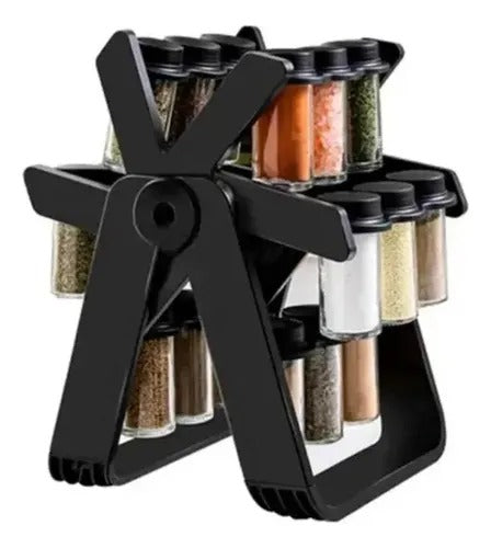 Hermoso estante para especias con 18 tarros de especias de vidrio, Puedes marcar las especias y los condimentos.Material de alta calidad: nuestro estante para especias tiene capacidad para 18 tarros de especias de vidrio, que están hechos de vidrio de grado alimenticio. El estante giratorio de almacenamiento de especias está hecho de ABS resistente, que es antioxidante y más duradero y estable. Gira bien y se ve bien.Ahorro de espacio: el estante de especias de rueda de ferris (las especias no están incluidas) mantiene tus condimentos y hierbas en orden. Puedes mantener con la ayuda del organizador de especias, puedes ahorrar más espacio en tu cocina. Se ve muy lindo en la cocina y te da mucho más espacio en tus armarios. Es un buen ayudante para tu cocina.Rotación de 360°: cuando esté en uso, puedes girar rápidamente el estante de condimentos para encontrar el tarro de condimentos que necesitas. La salida de agua del frasco de condimento de vidrio es uniforme, condimento antiadherente y fácil de usar.Gran capacidad: 18 tarros de vidrio sin plomo de 3.4 fl oz de gran diámetro para llenar varios condimentosCARACTERISTICASMaterial Durable de alta calidadColor NegroDimensiones del producto: 9,06" x 3,39" x 3,74"