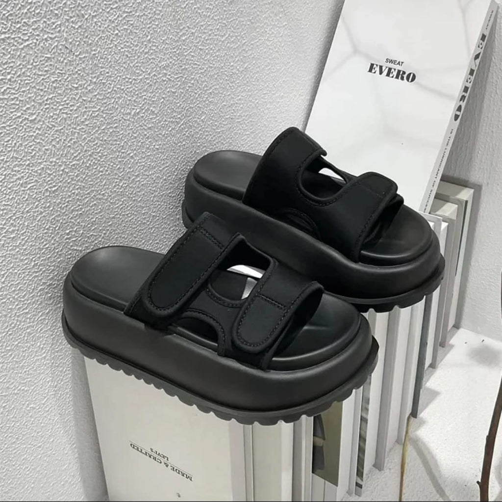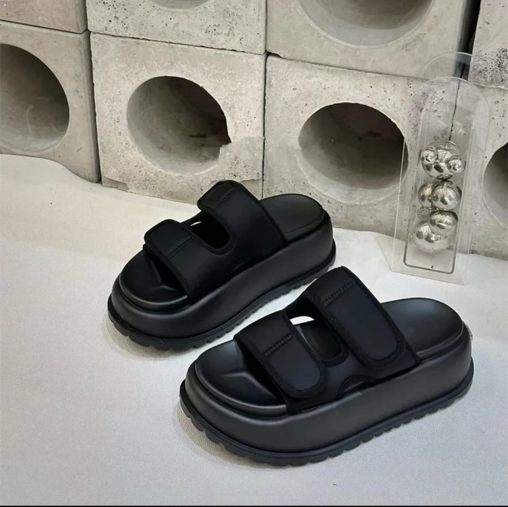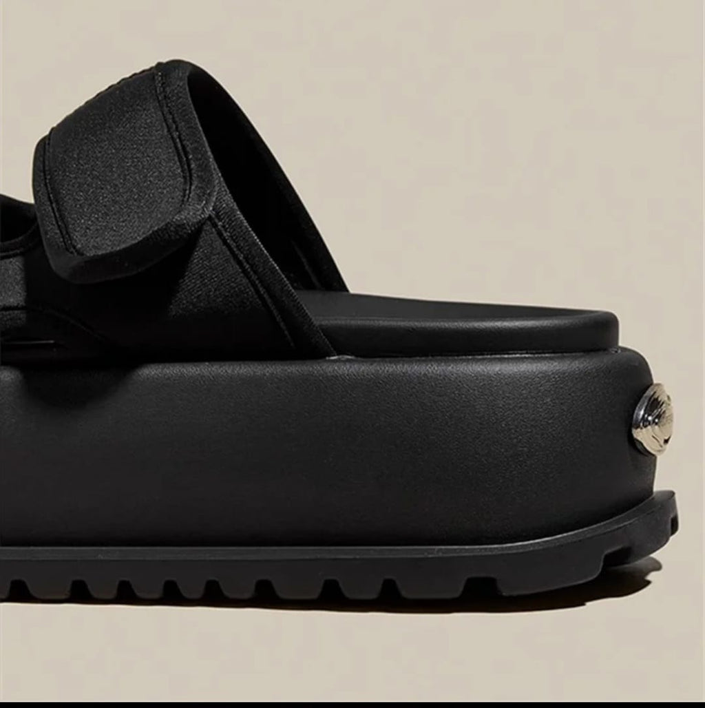 Disponible en dos tonos esenciales –blanco y negro– esta sandalia se adapta a tu estilo con una estética limpia, minimalista y poderosa. Su silueta robusta pero armoniosa destaca por una plataforma ergonómica ultra ligera, que no solo estiliza, sino que amortigua cada paso.