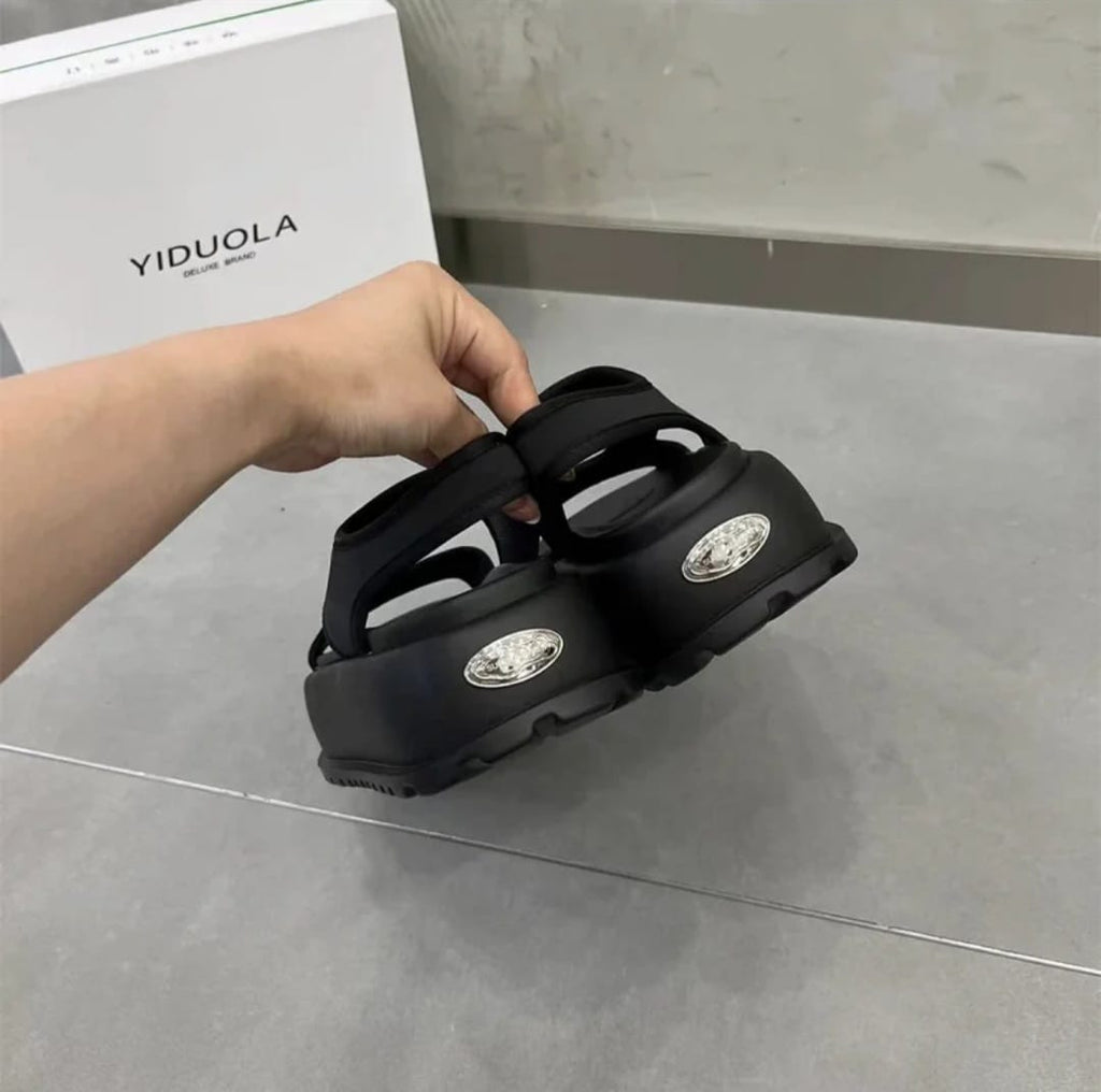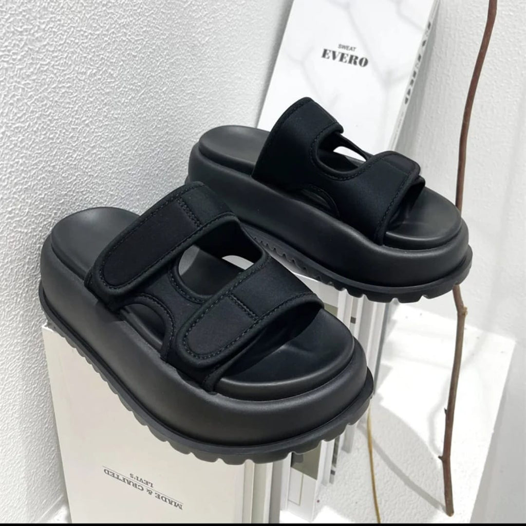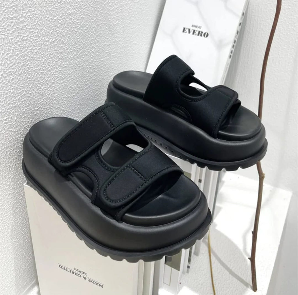 Disponible en dos tonos esenciales –blanco y negro– esta sandalia se adapta a tu estilo con una estética limpia, minimalista y poderosa. Su silueta robusta pero armoniosa destaca por una plataforma ergonómica ultra ligera, que no solo estiliza, sino que amortigua cada paso.