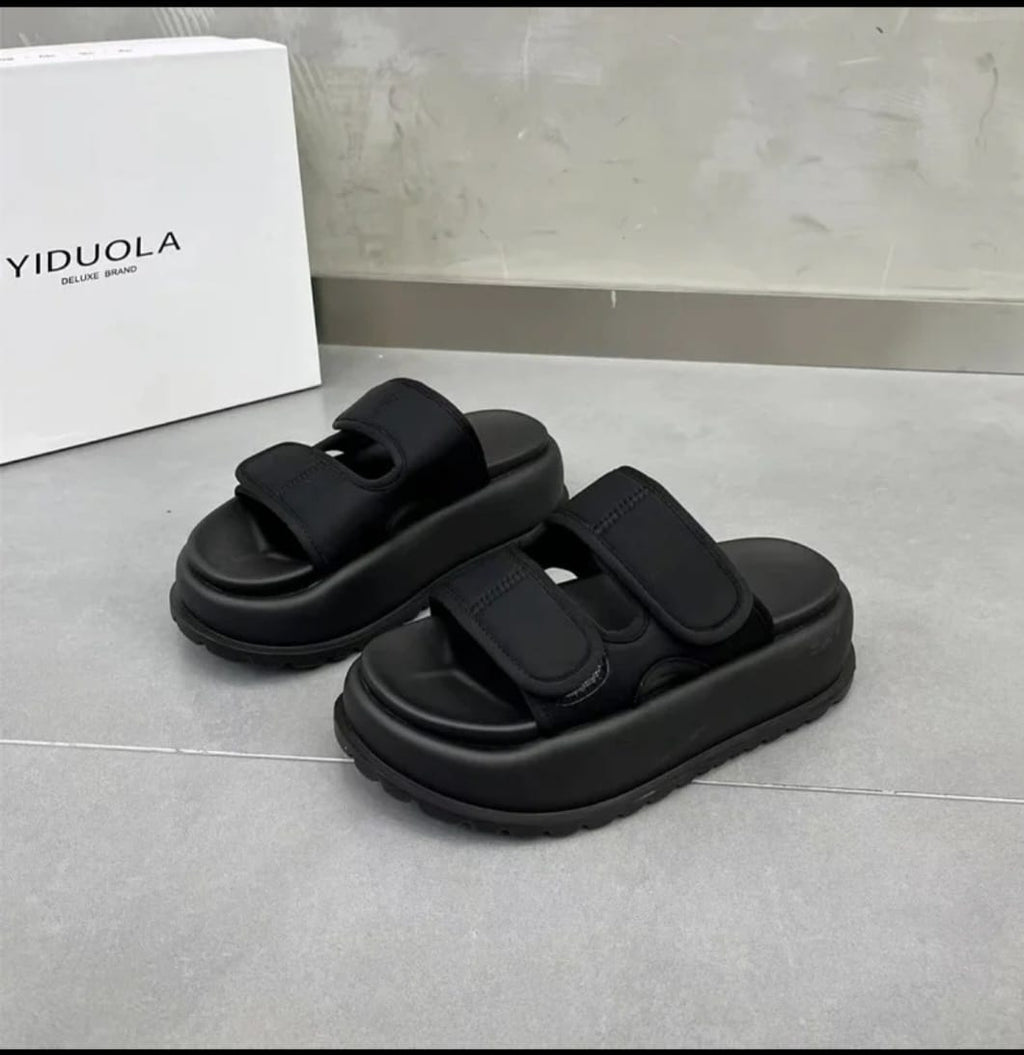 Disponible en negro y blanco, la nueva DIAEO combina una plataforma ergonómica con doble correa ajustable y un aplique elegante en el talón que eleva tu look con un toque de distinción.